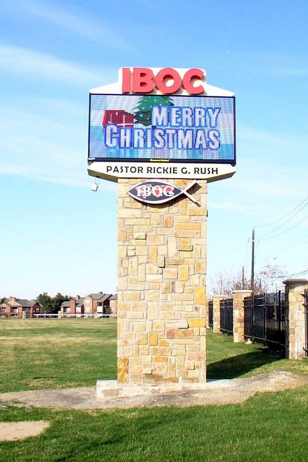 Research shows that you have about 3 seconds to attract a passer-by’s attention and communicate your message to him. We have exact data on this on our "Letter Visibility Chart" page under "Design and Marketing." An electronic message center or video display will make your message stand out from the crowd of signs around you. Even displaying the time and temperature can give a viewer valuable information which they will associate with your business. Combining that capability with animated messages, possibly in color, can really drive your sales up, 15% to 150%! Even the Federal Government has determined that signs containing electronic message centers are safety enhancing devices, not traffic hazards! This is why they are used on federal roadways to communicate with drivers. Read what the U. S. Small Business Administration (SBA) has to say about the advantages and costs of signs for your business: Read what the U. S. Small Business Administration (SBA) has to say about the advantages and costs of signs for your business: Why Do I Need A Sign For My Business SBA.pdf SBA Features and Benefits of EMCs.pdf Modern electronic message centers and video displays are illuminated using LEDs. This lowers their operating cost by 80+% over older, incandescent systems. If the system is properly designed the bulbs are part of a modular display board that is easily removable and changeable, thus helping to control service costs. The “pitch” or spacing of the LEDs greatly affects the appearance of the display, and the cost of the unit. In almost all instances an electronic message center or video display is built into or attached to additional signs that contains your name and other permanent information. You need to work with a sign manufacturer, not just an electronic message center salesman. Why Should I Buy from Signs Manufacturing?Signs Manufacturing is an excellent sign company, we make great signs. But just being a good sign company does not necessarily mean that a company can install and service Video Displays and Electronic Message Centers. They may be able to weld, install fluorescent lamps and roll paint, but can they build, program and service a computer? Digital LED electronic message centers and video displays are very complicated computers, remotely served by other computers, use proprietary software programs, and are not what most sign company employees, or electricians, understand. But because these signs are electrical they must be installed by a qualified electrical sign company or an electrical contractor. We are the largest electronic message center manufacturer in North Texas; one of only 3 in the entire State! And we are State licensed as both an electrical sign contractor and as an electrical contractor. We know what we are doing when it comes to Electronic Message Center and Video Display fabrication and service. We even carry all parts in stock for immediate replacement if something fails. A large part of our business is repairing mistakes other sign companies and electricians made installing signs they bought and resold to their customers. "We paid $34,000 for a full-color LED message center from Wal**** Signs & Lighting. It took them 11 months to get it installed. It is now 4 months old and has never worked in full-color mode. They don't know how to make it work. Can you fix it?" Jack Miller, Grace Point Church